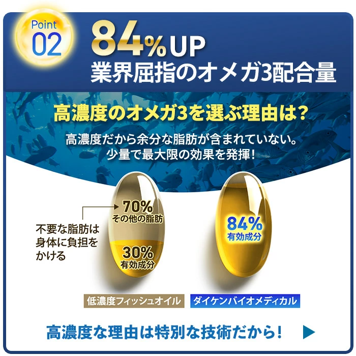ダイケンのDHAサプリはオメガ3の濃度が98.3%